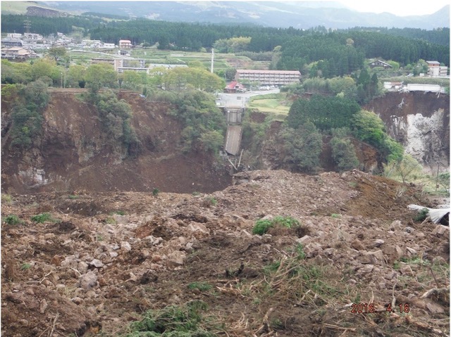 熊本地震では県内各地で大変な被害が発生しました.特に阿蘇地方では火山特有の災害も発生しており,その例がカルデラ壁の崩壊による数鹿流崩れや,高野台や山王谷川での大規模な土砂移動現象です.さらに,地震から2か月後の豪雨では地震で地盤が緩んでいたこともあって,被害が拡大した例も多くみられました.