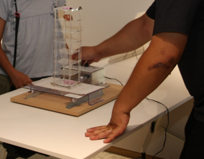 ・模型を使って,建物の揺れ方の違いを実際に見てみます.