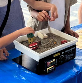 ・砂と水を使った実験で,地盤が変化する様子を目で観察します.